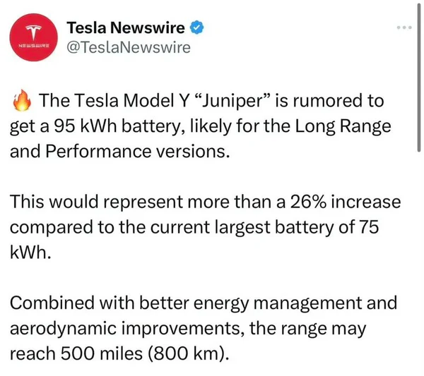 Model Y Juniper ที่กำลังจะมาถึง คาดว่าจะรวมเอานวัตกรรมของ Tesla จากรุ่น 3 ซึ่งประกอบด้วยไฟหน้า ไฟท้าย และกันชนหน้าใหม่ที่เพรียวบางยิ่งขึ้น และการออกแบบที่รอบนี้มีจุดมุ่งหมายเพื่อลดแรงต้านตามหลักอากาศพลศาสตร์ของยานพาหนะลงอย่างมาก ช่วยให้อากาศไหลผ่านช่องระบายอากาศได้อย่างมีประสิทธิภาพมากขึ้น